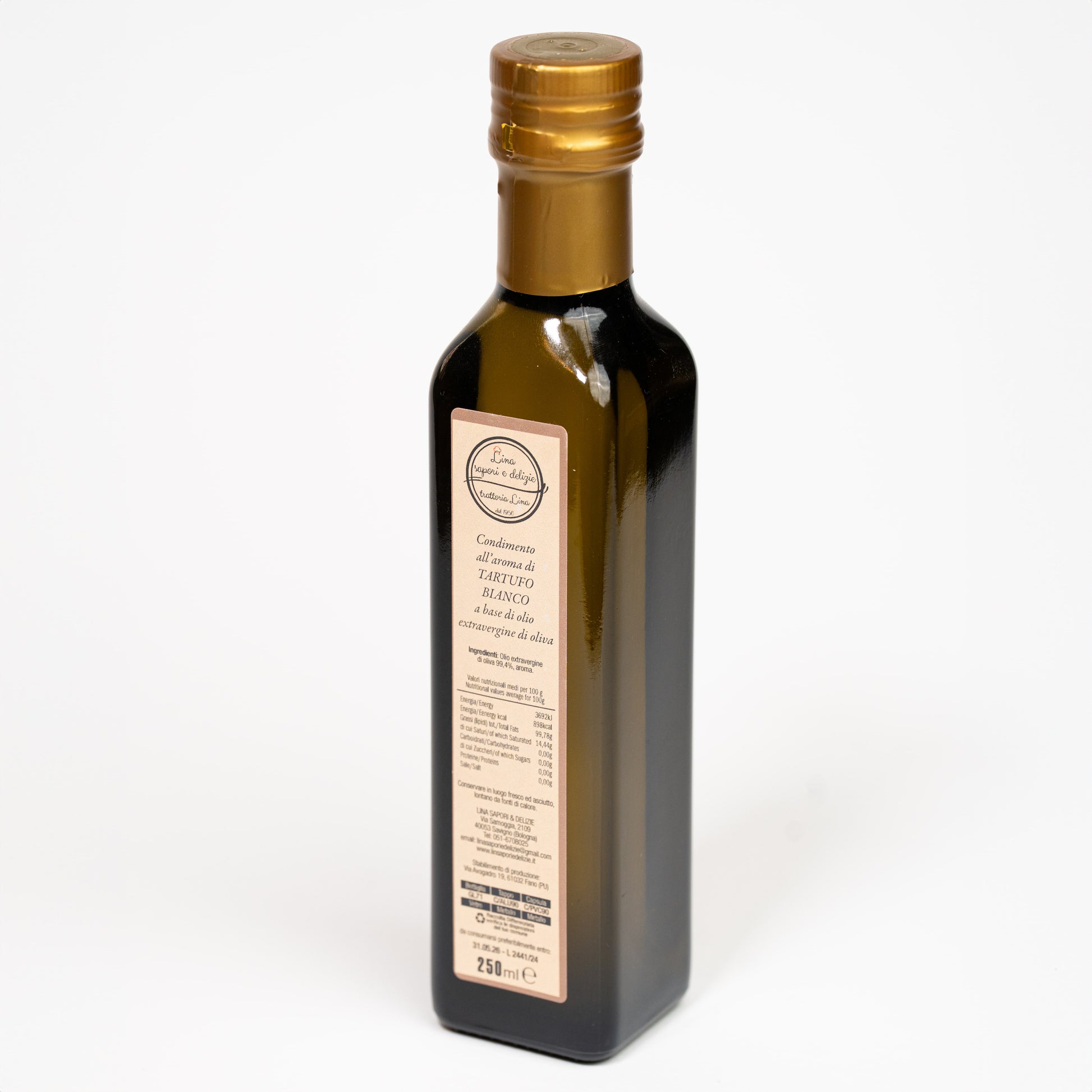 • Autenticità: Prodotto con ingredienti genuini e seguendo metodi tradizionali, il nostro olio d'oliva al tartufo bianco porta in tavola l'autentico sapore dell'Italia.